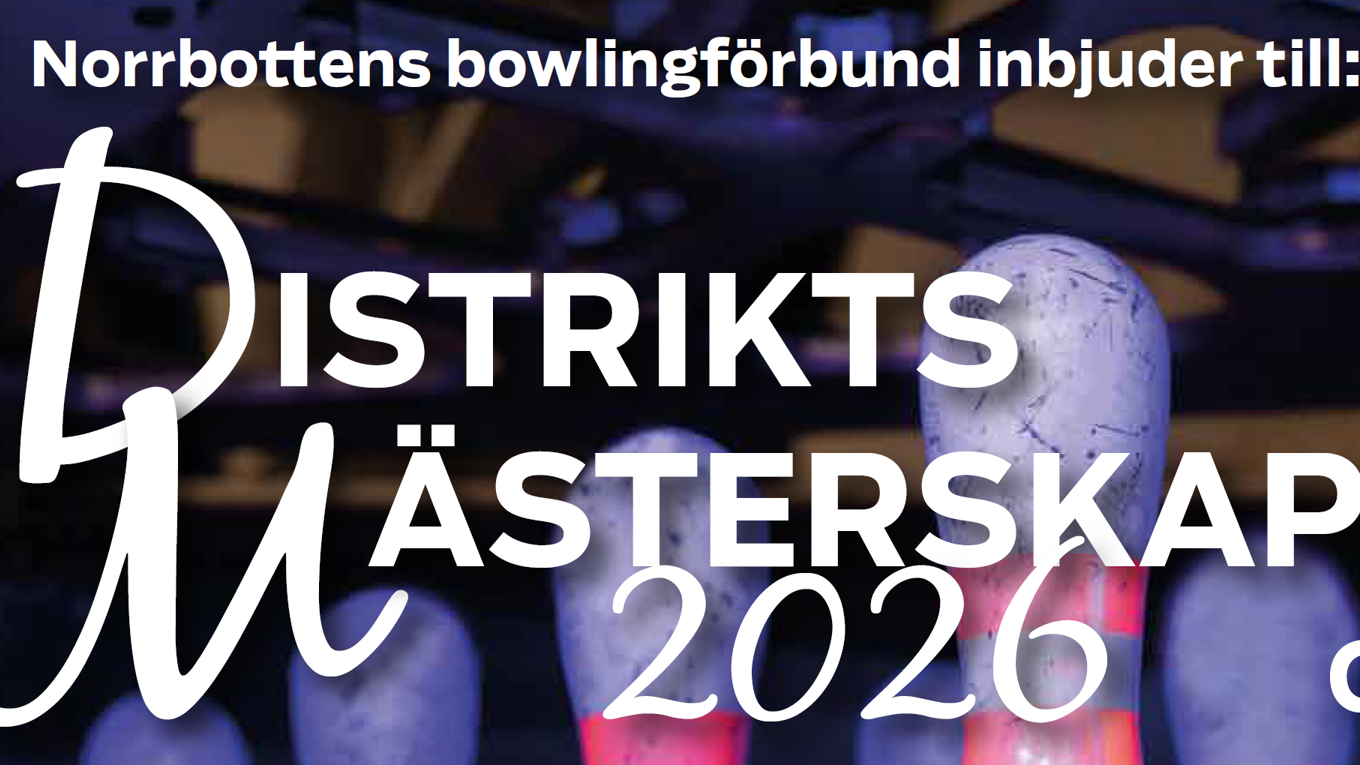 Nu börjar det vara dags för distriktsmästerskap i Norrbotten. Anmäl dig på länken nedan. Länk till anmälningssidan hittar du här: https://nbf.bowlres.se/Länk till PDF Poster: Norrbottens Bowling… -