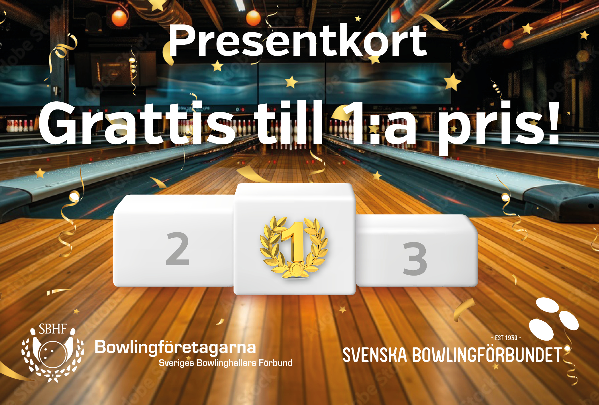 SBHF har bistått Sveriges bowlinghallar, distrikt och föreningar med bowlingcheckar att dela ut som priser. De har nu digitaliserat bowlingcheckarna och skapat digitala presentkort som går att köpa på deras hemsida. Nedan finner ni några exempel som är skapade som priser i just tävlingar. Klicka på bilden för att komma till shoppen för respektive presentkort.