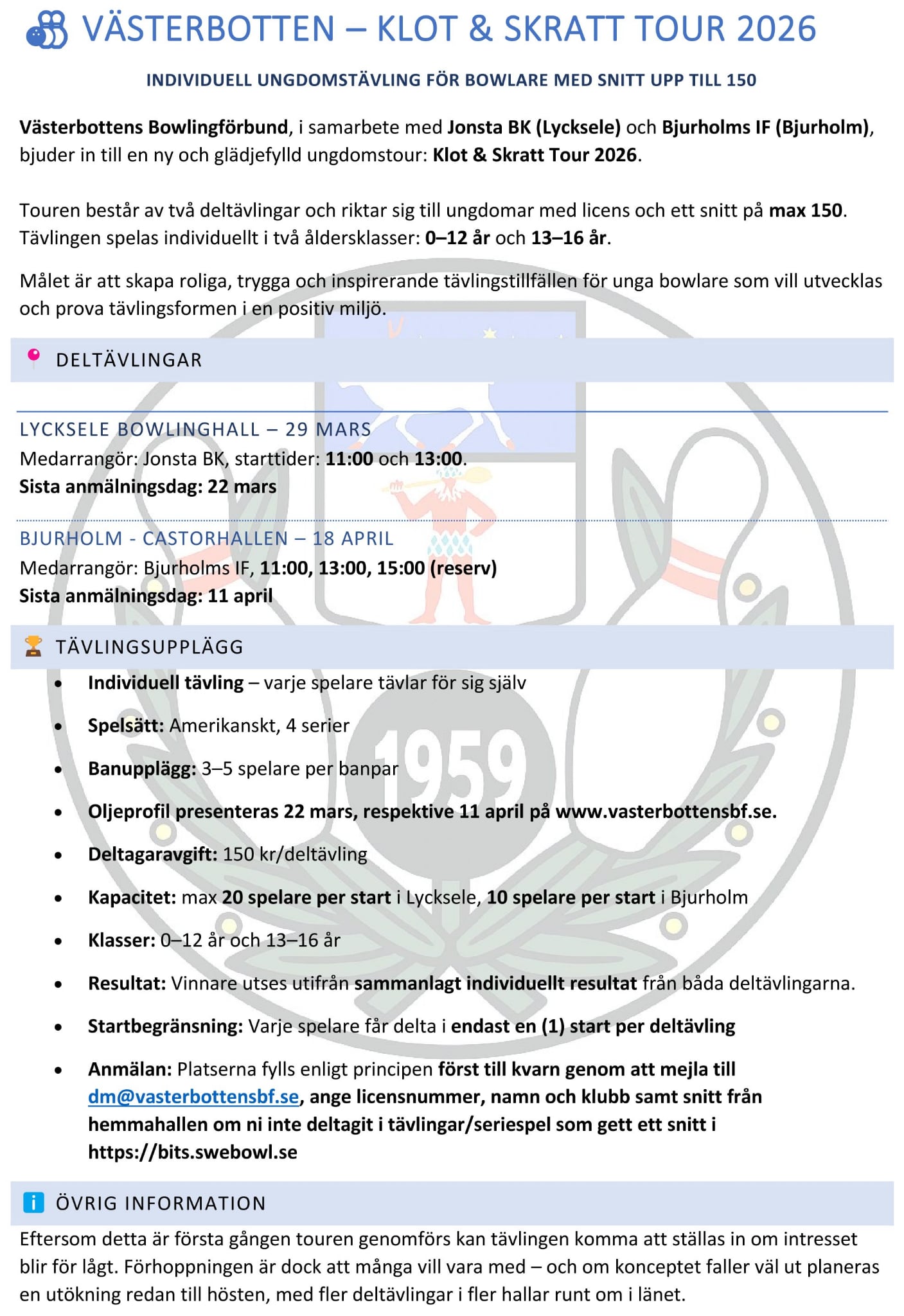 Målet är att skapa roliga, trygga och inspirerande tävlingstillfällen för unga bowlare som vill utvecklas
